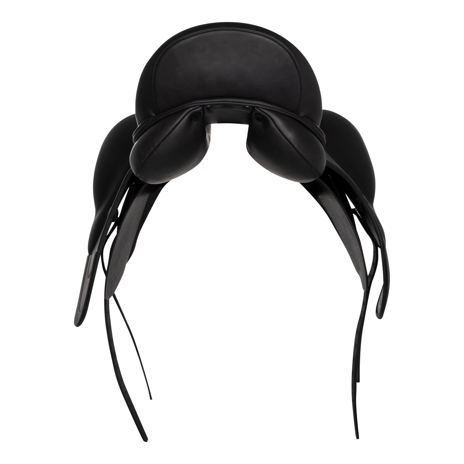 Dresurno sedlo iz visokokakovostnega, mehkega dvojnozrnatega usnja, zasnovanega tako, da nudi najboljši tesen stik, ne da bi ovirala konjeva gibanja.