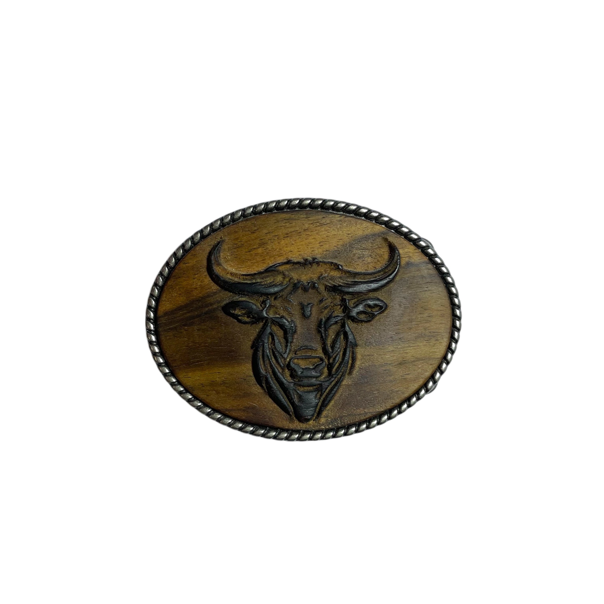 Lesena sponka z motivom bika – močan naraven dodatek z izrazitim značajem.