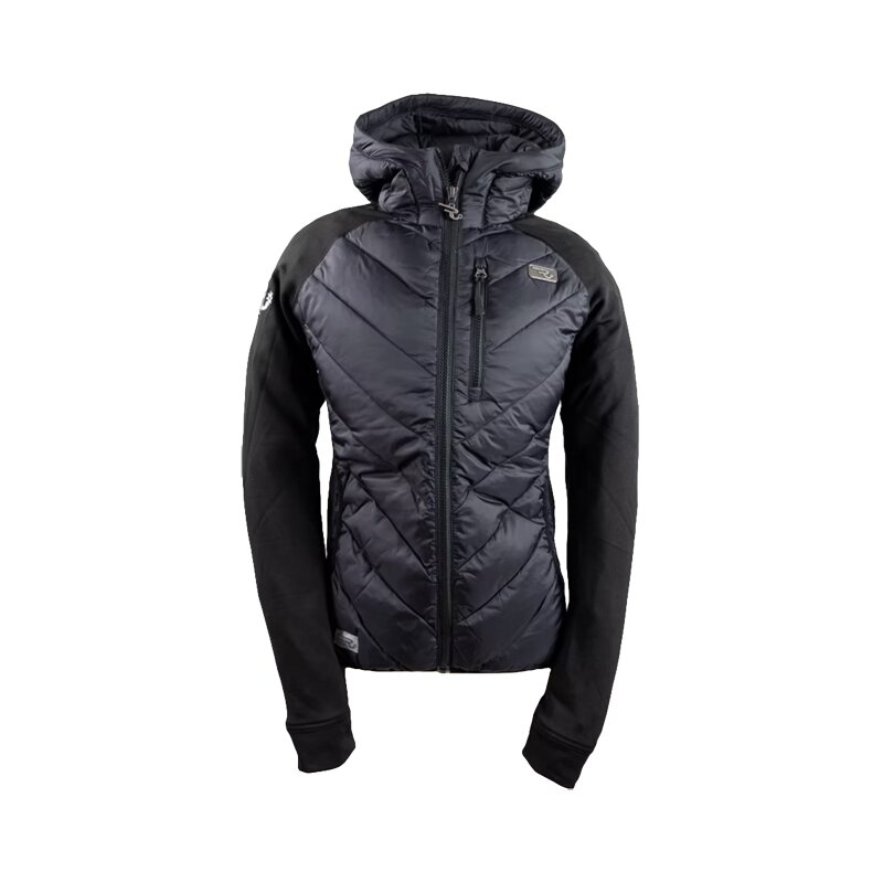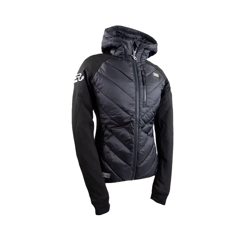 Modna in funkcionalna ženska jakna OSWSA Ranch Girls Hybrid ProShield “Olivia” v črni barvi združuje udobje, zaščito pred vetrom in moderno obliko. Sprednji del in kapuca iz vodoodpornega najlona nudita zaščito pred vetrom in rahlim dežjem, zadnji del iz mehke flis tkanine pa zagotavlja toplino, zračnost in svobodo gibanja. Idealna kot jahalna ali vsakodnevna jakna.