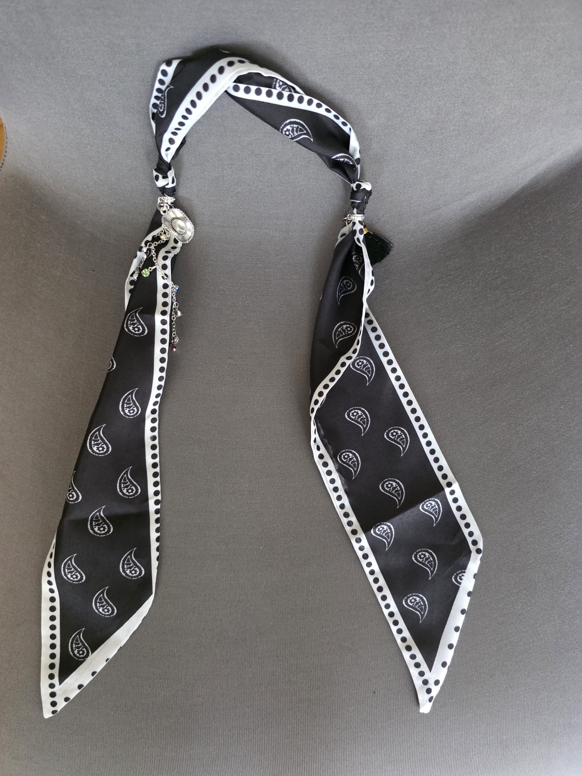 Rutka za škornje – Boot Bandana je vsestranski modni dodatek, ustvarjen za izražanje osebnega stila na kreativen način. S svojo večbarvno zasnovo in elegantnimi detajli v zlati ali srebrni barvi doda pridih posebnosti vsakemu videzu.