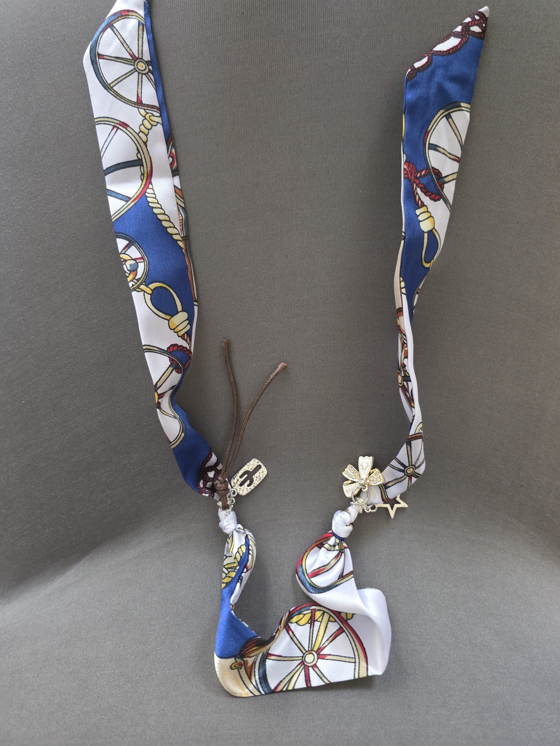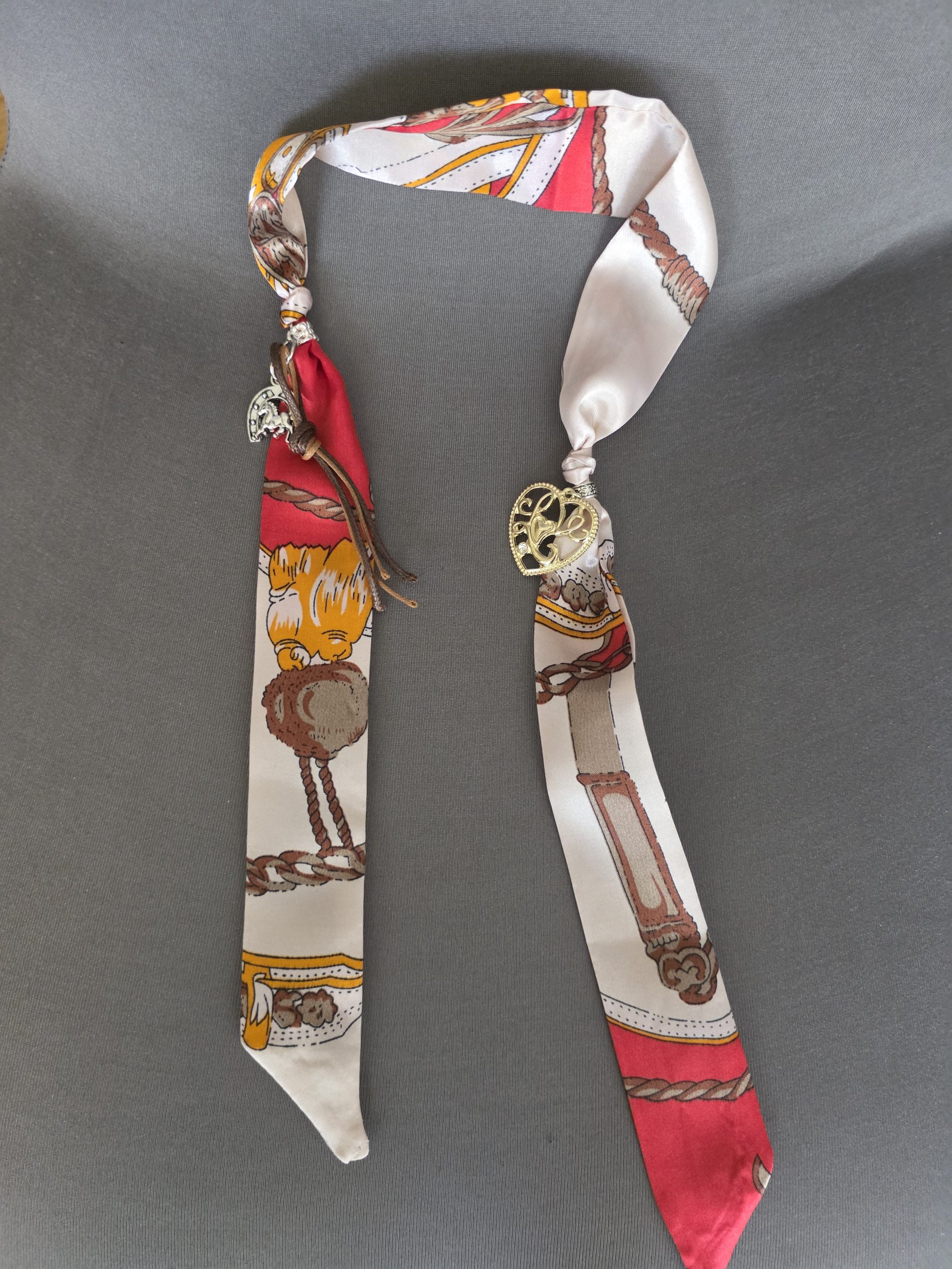 Večbarvna rutka z detajli v zlati ali srebrni barvi, ki popestri vsak outfit. Lahko jo zavežeš na škornje, klobuk ali torbico ter ustvariš unikaten stil.