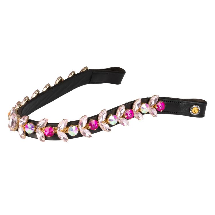 Eleganten čelnik z okrasnimi kamenčki in prelivajočimi se roza kristali v obliki lista, popoln za dodajanje iskrice in prefinjenosti vaši uzdi.